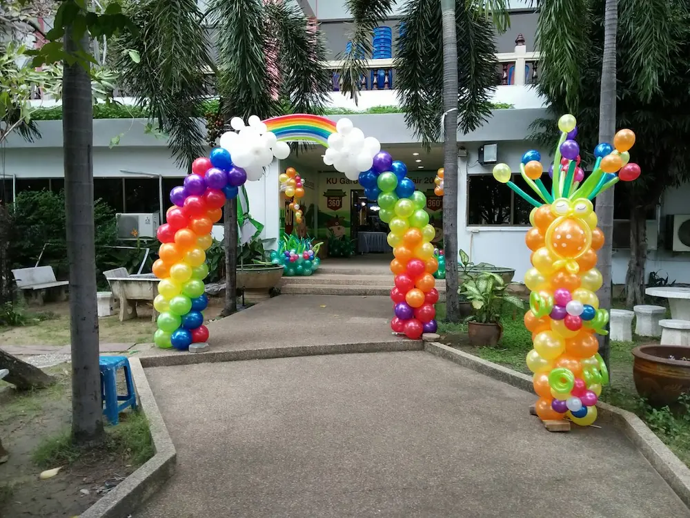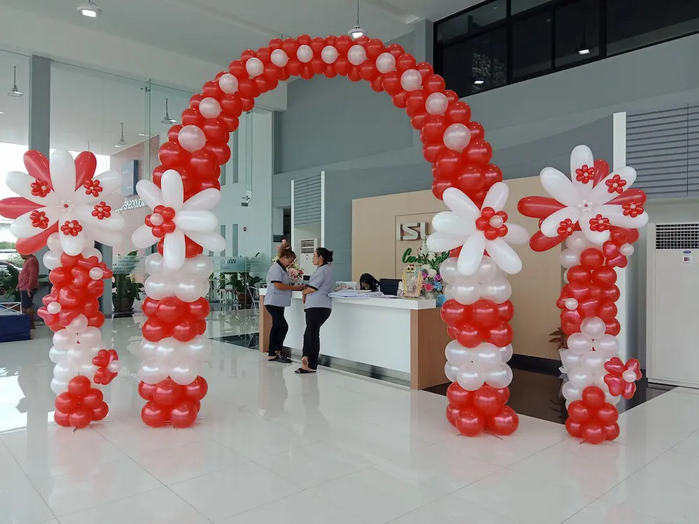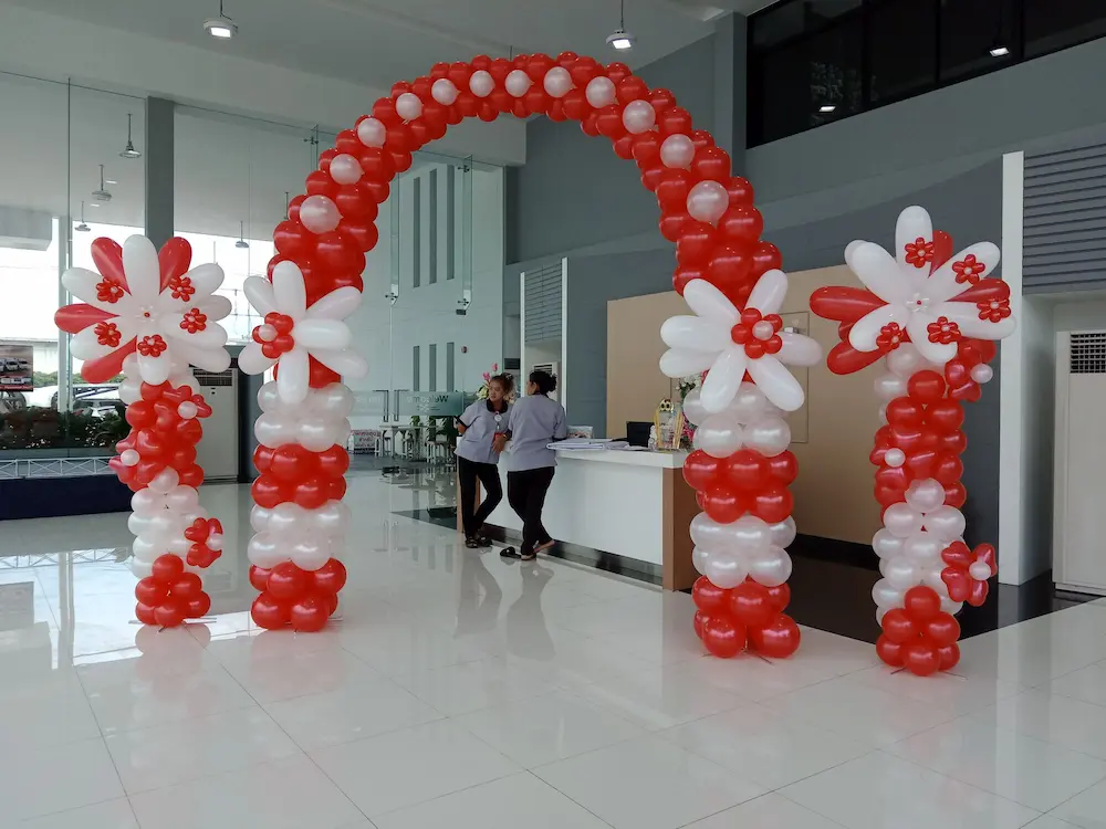 ซุ้มลูกโป่ง (Balloon Arch) เป็นโครงสร้างตกแต่งที่โดดเด่นและสร้างบรรยากาศน่าประทับใจให้กับทุกงาน ลูกโป่งถูกจัดเรียงอย่างสวยงามในรูปแบบของซุ้ม สามารถปรับแต่งได้หลากหลายสี ขนาด และดีไซน์ เพื่อให้เข้ากับธีมของงาน ไม่ว่าจะเป็นงานแต่งงาน งานวันเกิด งานเลี้ยงฉลอง หรืองานแสดงสินค้า ซุ้มลูกโป่งถือเป็นจุดดึงดูดสายตาที่ไม่ควรมองข้าม