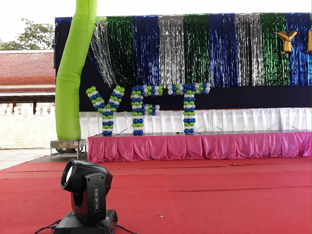 อักษรลูกโป่ง (Balloon Letters) คือการจัดลูกโป่งให้เป็นรูปตัวอักษรตามความต้องการ ไม่ว่าจะเป็นชื่อ คำอวยพร หรือข้อความพิเศษ อักษรลูกโป่งสามารถใช้ถ่ายทอดข้อความสำคัญ เช่น คำอวยพร ชื่อเจ้าของงาน หรือธีมของงาน อักษรลูกโป่งสามารถใช้ตกแต่งในงานต่างๆ เพื่อเพิ่มความน่าสนใจ สื่อสารข้อความ และสร้างบรรยากาศที่น่าจดจำ ด้วยดีไซน์ที่โดดเด่นและการจัดวางที่สร้างสรรค์ อักษรลูกโป่งช่วยเพิ่มความน่าสนใจให้กับทุกโอกาส